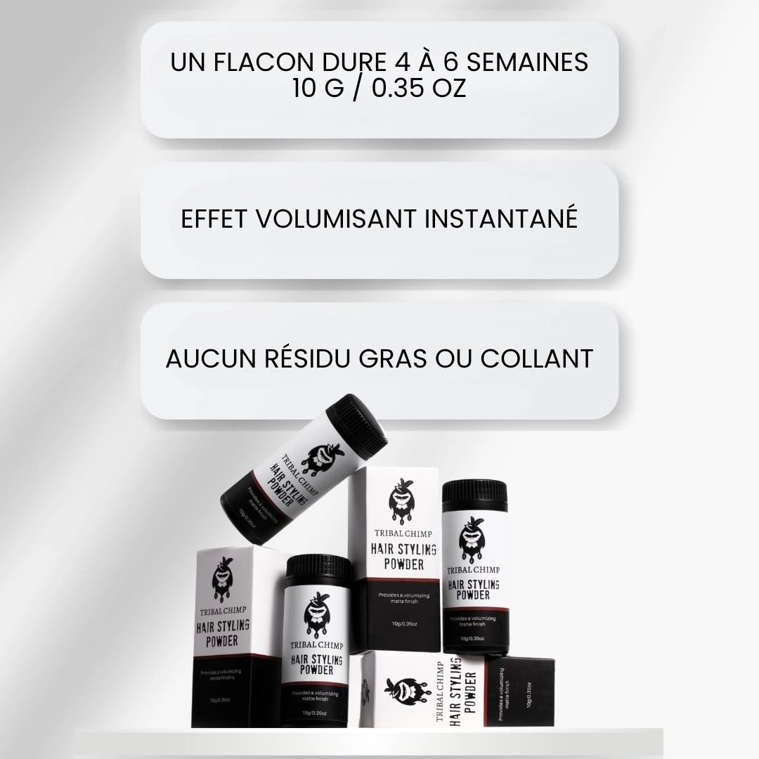Transformez vos cheveux en quelques secondes grâce à la poudre coiffante Tribal Chimp. Profitez d’un style naturel, sans résidus gras, qui tient toute la journée.