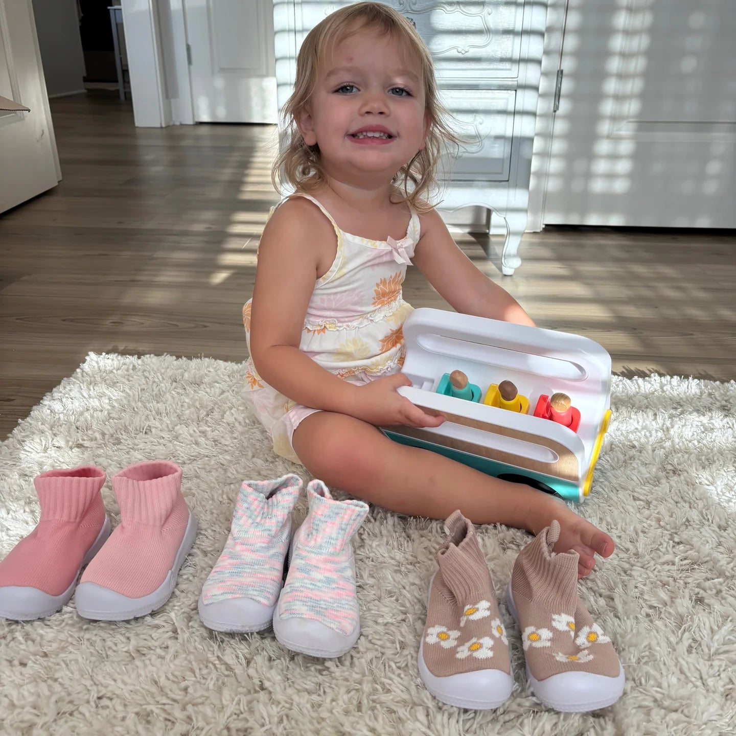 Leur semelle souple et la sensation du sol aident les bébés à développer un meilleur équilibre et plus de confiance lors de leurs premiers pas.