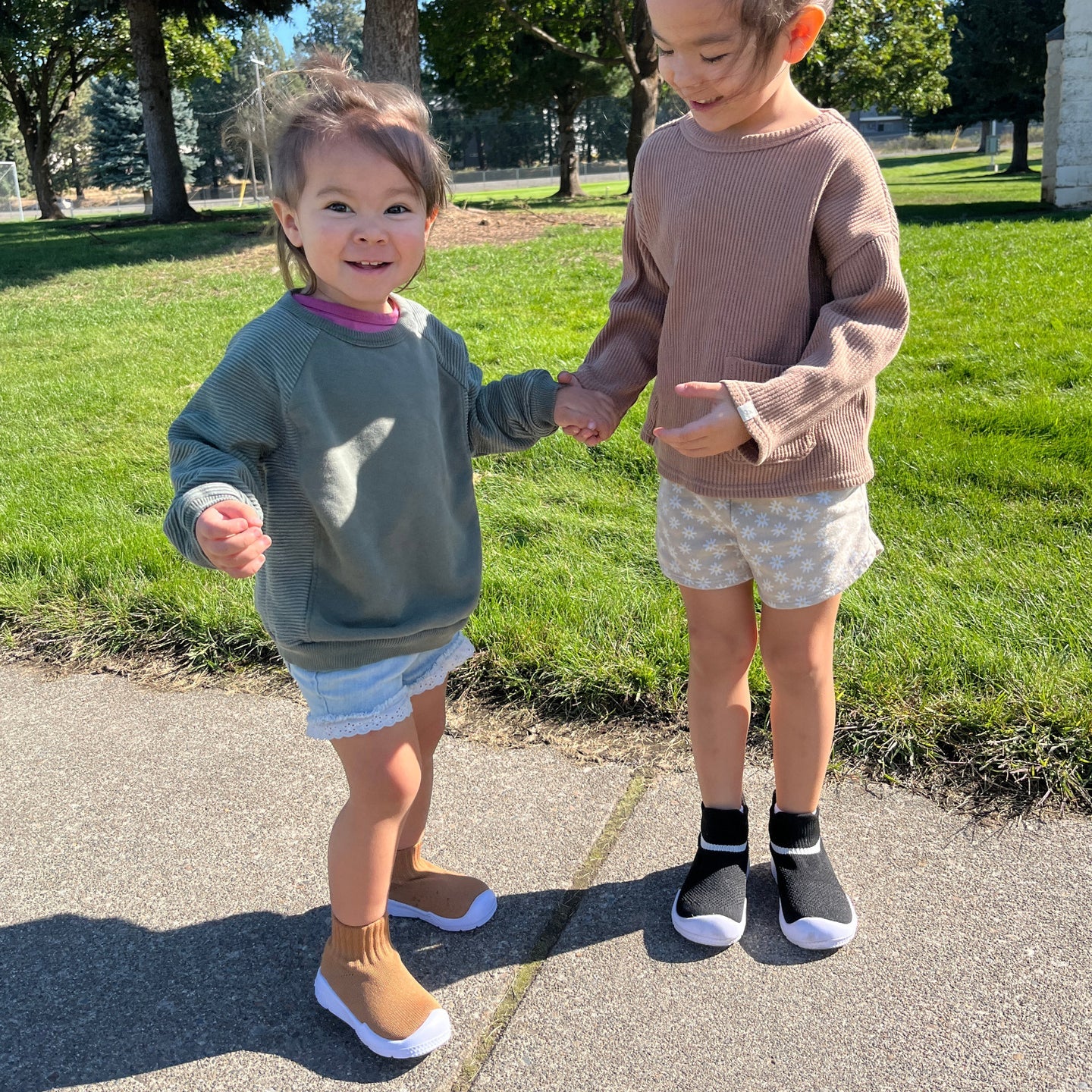 Conçues avec une boîte à orteils large et une semelle flexible, elles accompagnent le développement naturel du pied tout en mettant fin aux batailles quotidiennes pour enfiler leurs chaussures.