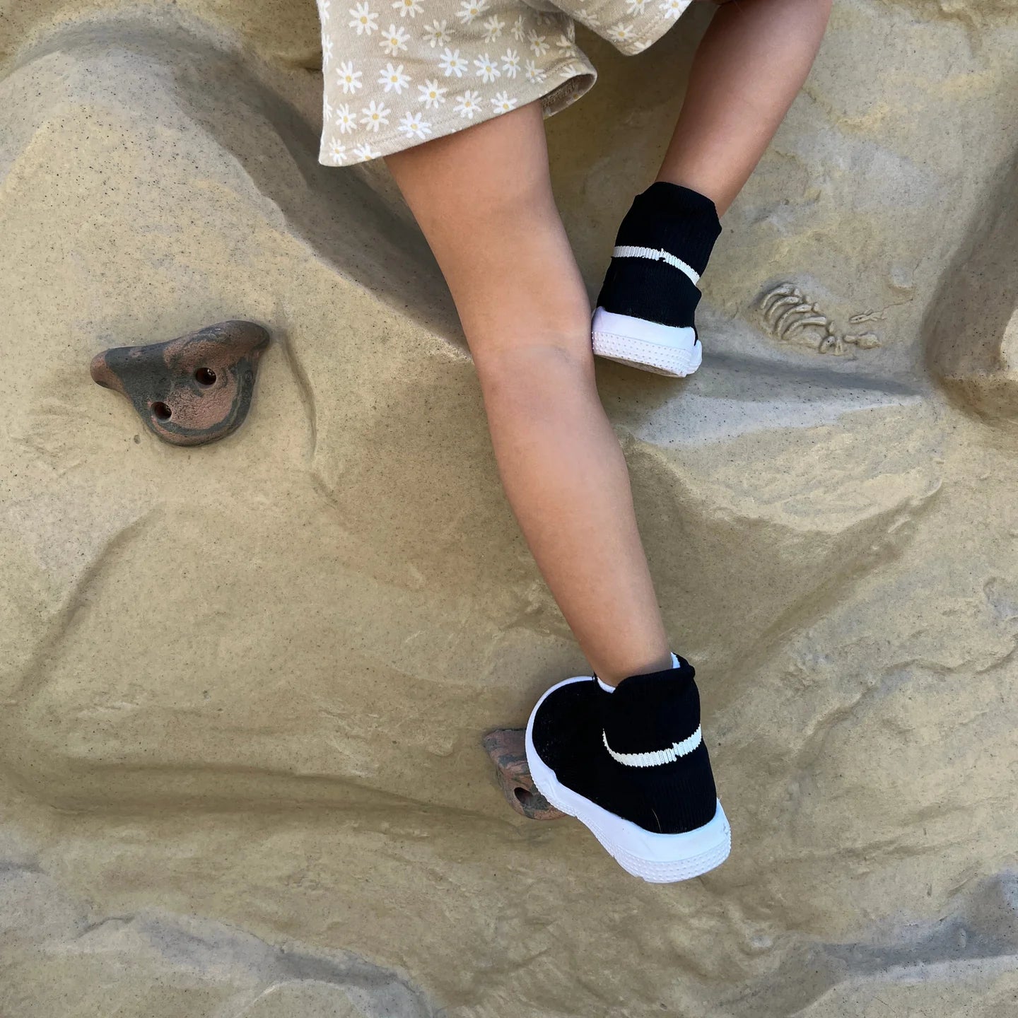 Plus de batailles pour enfiler les chaussures ! Elles se glissent en quelques secondes et restent bien en place grâce à leur design chaussette haute.
